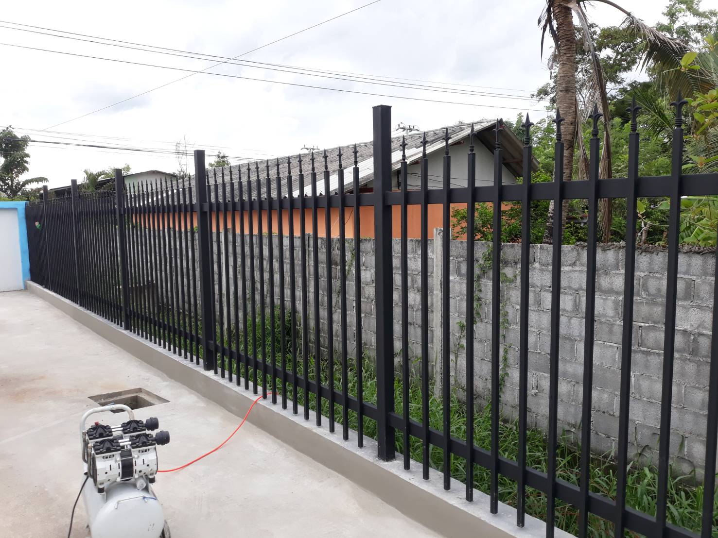 รายละเอียดของงาน : สร้างรั้วบริษัท เป็นรั้วคอนกรีตฐานตอกเสาเข็มและเทคานรับน้ำหนัก และกำแพงเป็นคอนกรีตฉาบเรียบ และสร้างเสาขึ้นใส่แท่งเหล็กพร้อมซี่เหล็กเพื่อความสวยงาม เราเน้นคุณภาพของฐานรากเนื่องจากด้านล่างเป็นดินอ่อนและมีน้ำท่วมขังในบางครั้ง ดังนั้นจึงแนะนำให้ลูกค้าทำการตอกเสาเข็มเพื่อให้รากฐานของโครงสร้างมีความแข็งแรงมากขึ้น พร้อมทั้งก่อคานล่างเพื่อรับนำหนักและเน้นในความคงทน และตัวรั้วเป็นแบบซี่รั้วเหล็กเพื่อให้ดูสวยงาม ปลายซี่รั้้วจะมีเหล็กหล่อเป็นลูกเล่นไม่ให้ดูแข็งกระด้างจนเกินไป ผลงานออกมาสวยงามตามแบบแปลนที่ได้ออกแบบไว้