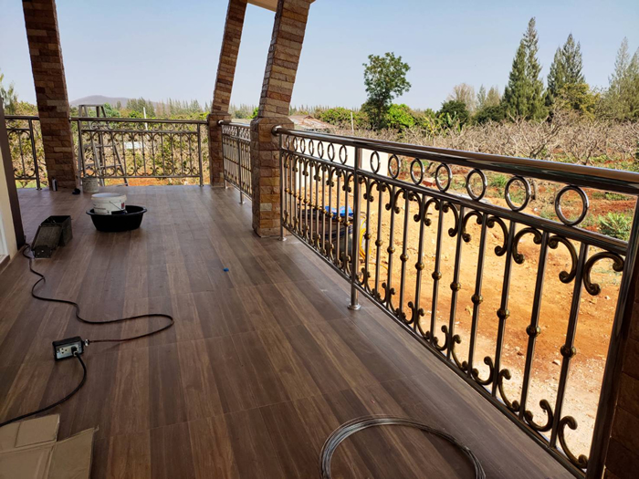 ผลงาน : ผลงานการติดตั้งราวระเบียบสแตนเลสบนพื้นไม้เสาปูน