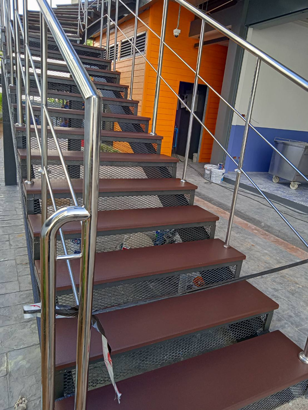 • ผลงานติดตั้งราวบันไดสแตนเลสแบบใช้สแตนเลสกล่องกลม